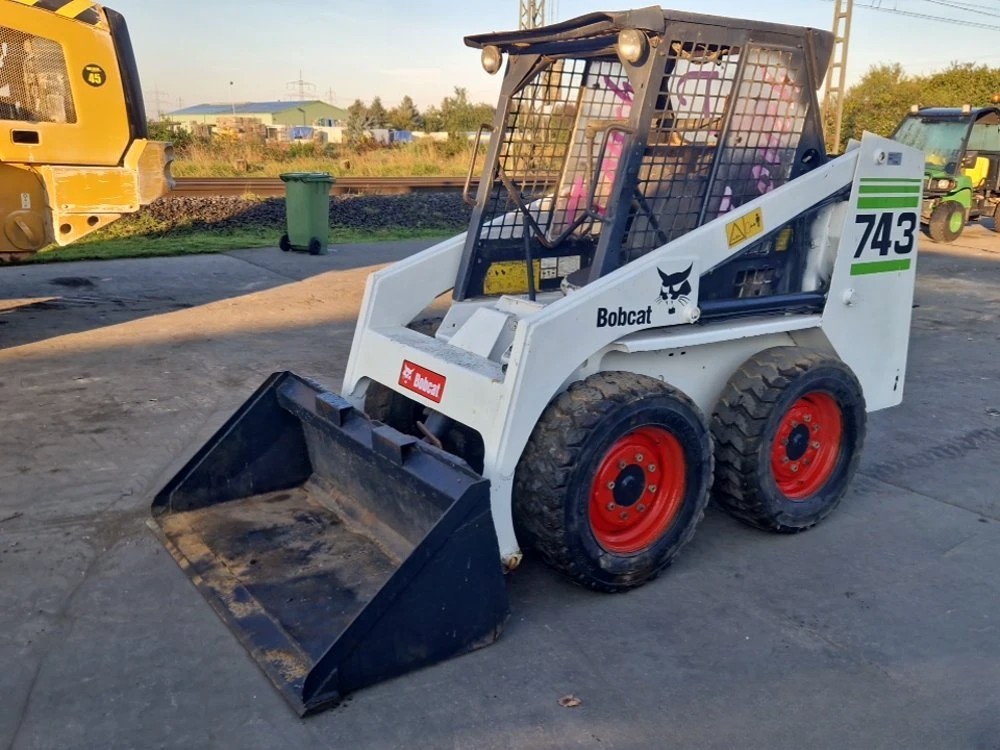 This Bobcat 743 skid-steer loader is in reliable working condition, weighing approximately 4,000 kg and showing 3,457 hours.